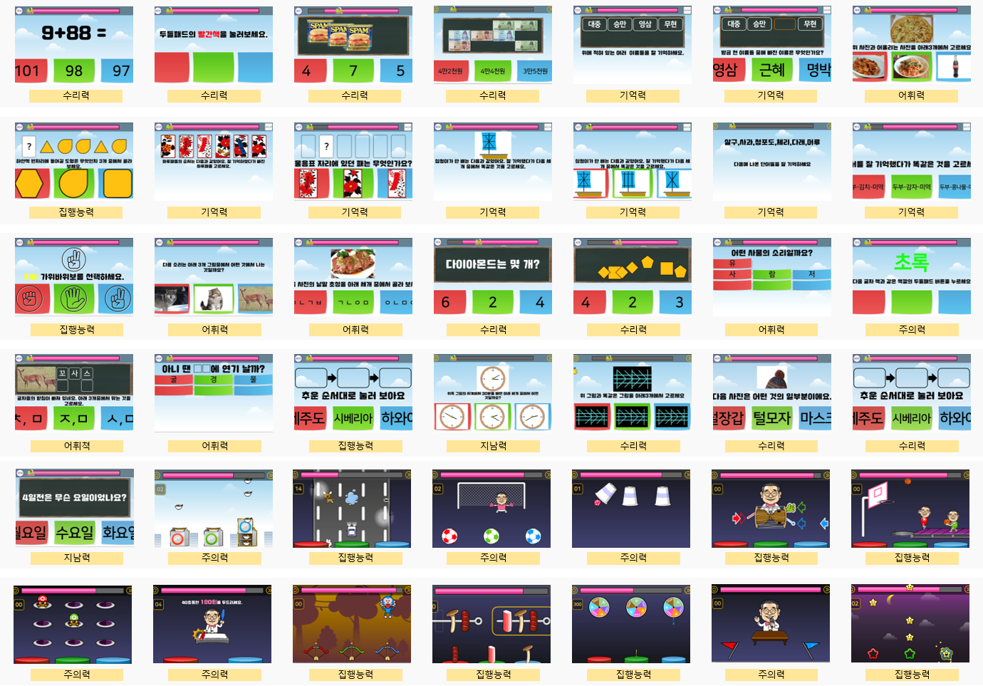 | 주요 특징 | 대규모 인원관리 개인별 인지훈련 |