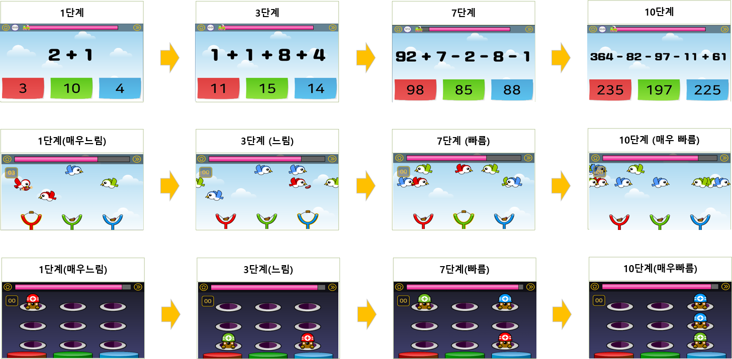 모든 게임들은 1~10단계의 난이도를 가지고 있으며 필요에 따라 수정 가능