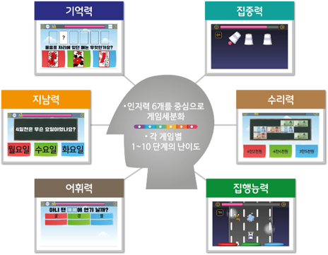 전국두뇌자랑은 기존 인지중재훈련 콘텐츠를 게임화하여, |